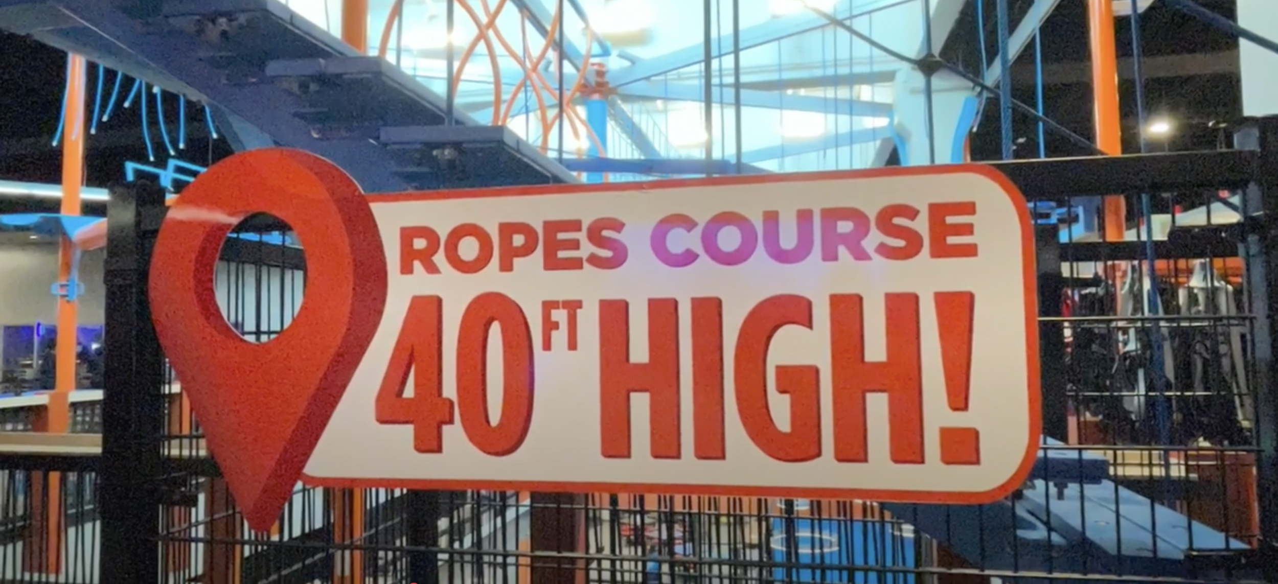 Images feature a bumper cars wall decal, and ropes course informational signage